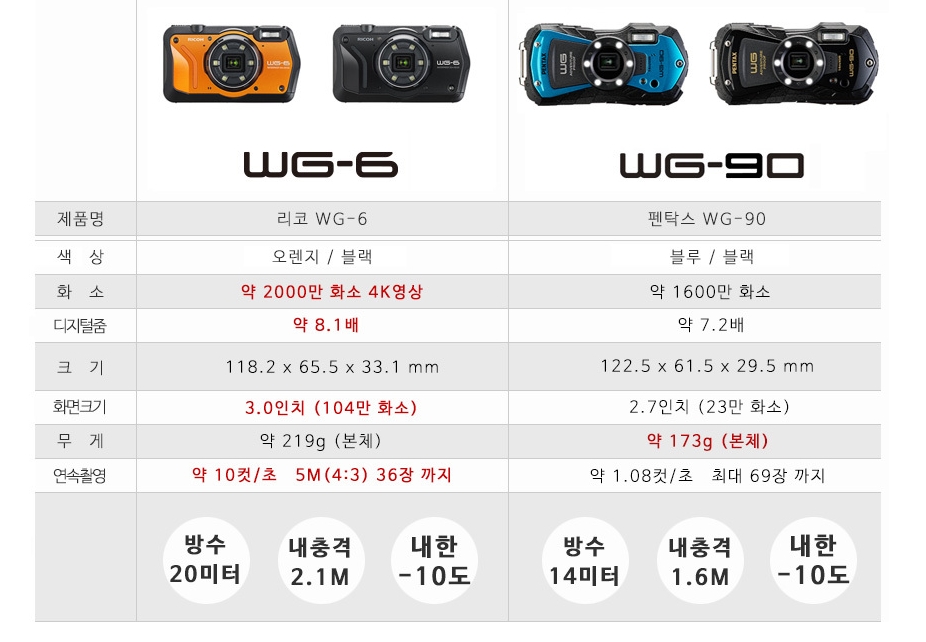 * 상위 버전을 사려먼 가격이 저렴한 WG-6을 사면 될 것 같다.